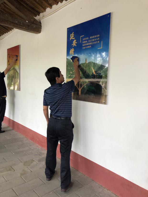 活動中,黨員干部重點擦拭了黨史宣傳板、誓詞臺、路燈桿,清掃了湖邊棧道,撿拾了湖邊白色垃圾。在清掃過程中,同志們精神抖擻,不怕臟不拍累干得熱火朝天。經(jīng)過清掃的基地煥然一新,環(huán)境明顯改善。