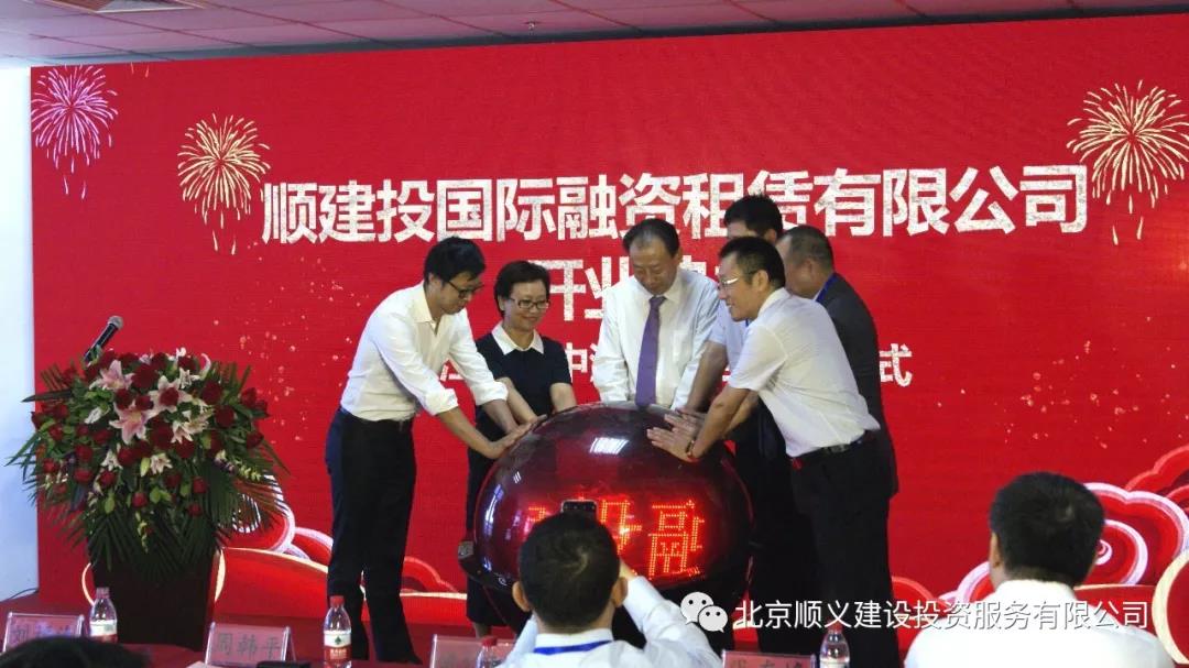 北京順義建設(shè)投資服務(wù)有限公司黨委書記、董事長(zhǎng)劉福海,黨委副書記、經(jīng)理姚仕松共同為順建投融資租賃公司開業(yè)揭牌,隨后兩位領(lǐng)導(dǎo)與江河集團(tuán)執(zhí)行總裁周韓平,工商銀行順義支行行長(zhǎng)姚蕾、農(nóng)業(yè)銀行順義支行行長(zhǎng)姚毅、中國(guó)銀行順義支行行長(zhǎng)閆振坤共同開啟啟動(dòng)球,宣告順建投融資租賃公司于2018年6月29日上午10點(diǎn)06分正式揚(yáng)帆啟航!