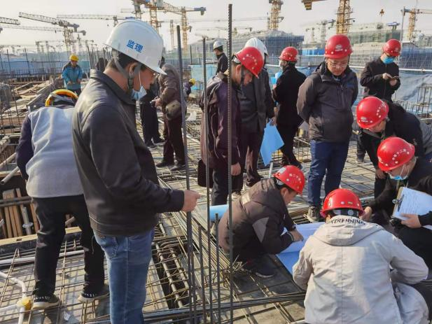 為確保項目進程與質(zhì)量安全,監(jiān)理人員對施工現(xiàn)場進行“5+2”“白加黑”的24小時不間斷監(jiān)理,做到“風雨無阻保進度,爭分奪秒達目標”。他們眾志成城群策群力團結(jié)一致,他們勇往直前百折不撓拼搏進取,他們兢兢業(yè)業(yè)甘為“三?!蹦瞰I,他們嚴謹奉公追求卓越精益求精,他們與鋼筋水泥為伴、與圖紙儀器為伍,傳承一份責任、發(fā)揚一種精神,彼此鼓勵、彼此合作,用堅實的背脊與日夜的堅守,擎刻著一座“妙不可言”令人“心向往之”的未來之城,為祖國的“千年大計”貢獻著監(jiān)理力量。